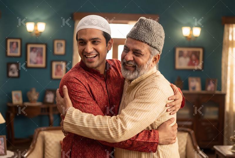 happy indian father son hug to each other smiling celebrating eid festival ramadan muslim men family embrace love bonding happiness celebration tradition culture islamic togetherness relationship respect joy greeting home indoor lifestyle people traditional kurta cap affection warmth cheerful festive community elders youth connection devotion faith religion portrait harmony support kindness reunionSimilar Items